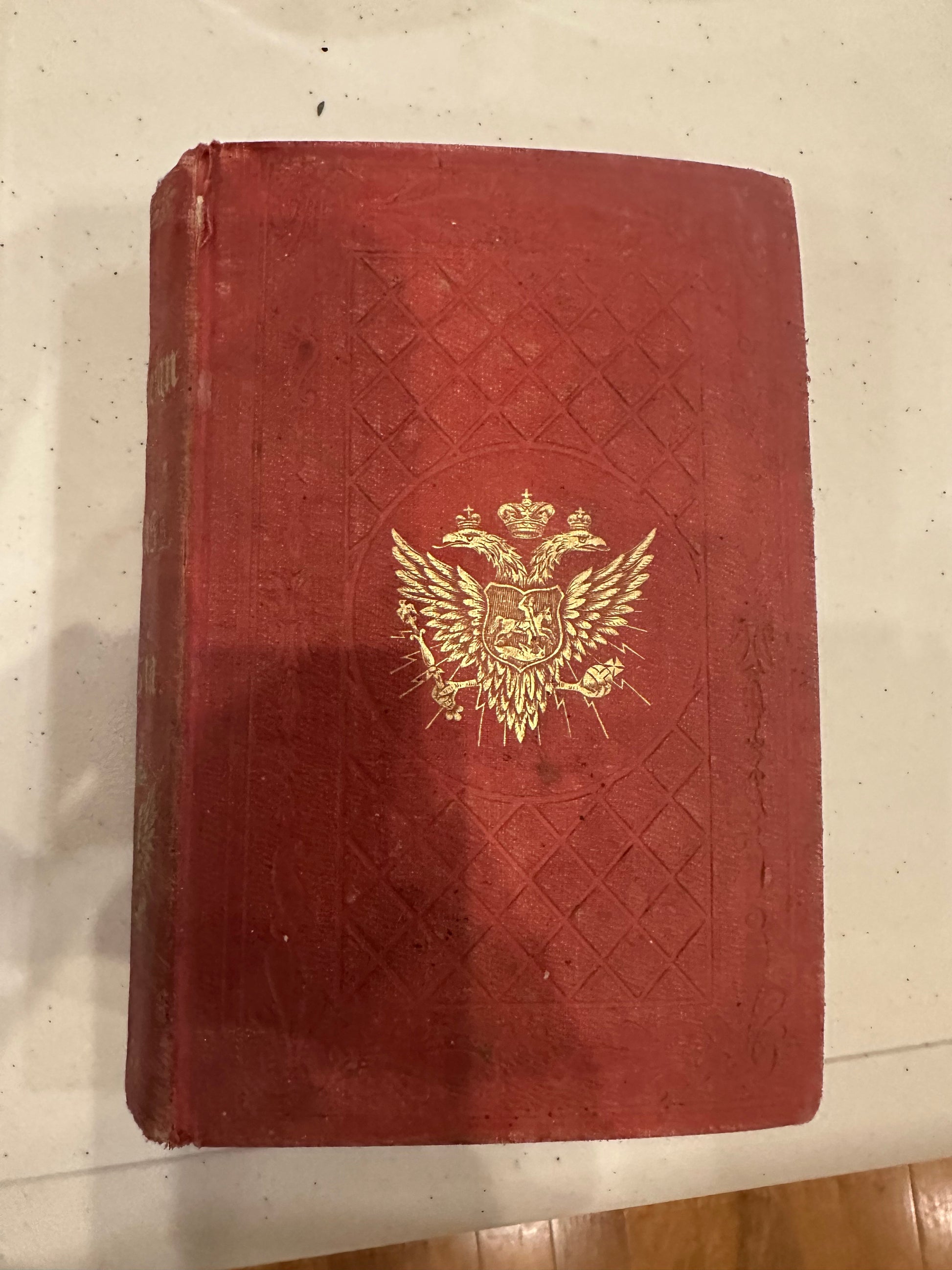 This red cloth, gilt-tiled hardbound volume with marbled endpapers is in fair condition. Coveris slightly bent and worn, but intact. No pages missing, very few markings or dog-earing. Moderate foxing and very little staining. 432 pp. including publishers catalogue. Pricing reflects condition.